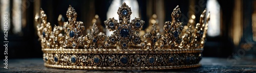 Obraz premium Glorious crown for antique fantasy concept. An ornate golden crown embellished with precious stones.