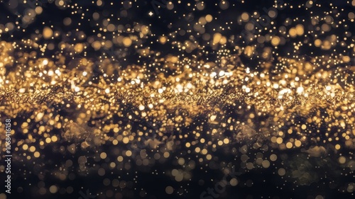 © Vladimir, Naklejka premium Glorious gold bokeh flare light effect with sparkling particles on a black background
