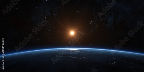 Fototapeta premium Glorious sunrise over earth with starry space background.