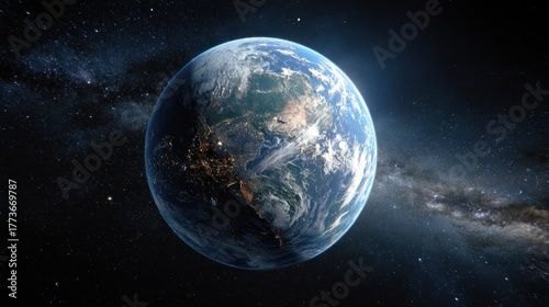 Fototapeta premium Glorious view of Earth from space highlighting vibrant continents and clouds against a backdrop of stars