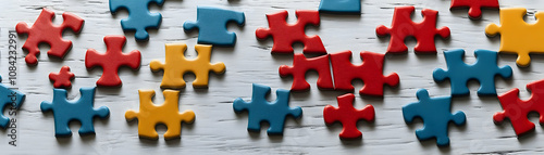 © HaJung, Obraz premium Glossy background with geometric puzzle patterns copy space on left. concept as Glossy background featuring geometric puzzle patterns symbolizing structured teamwork and the importance of each members
