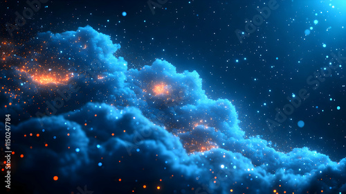 © HaJung, Obraz premium Glossy Background with Secure Cloud Infrastructure and Interconnected Clouds for Data Security and Branding