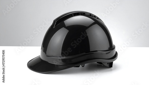Fototapeta premium Glossy black hard hat on white surface