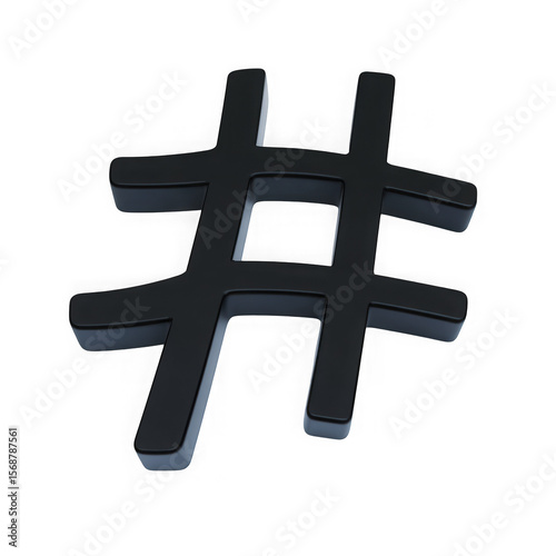 Obraz premium Glossy black hashtag symbol isolated on transparent background