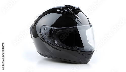 © Habibah, Fototapeta premium Glossy black motorcycle helmet with clear visor on white