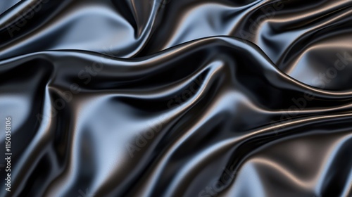 © Natchanok, Fototapeta premium Glossy Black Silk Fabric Draped Textures for Elegant Backgrounds