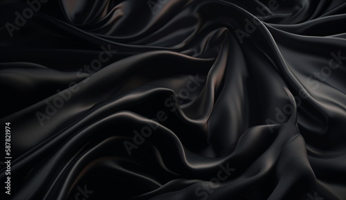 Obraz premium Glossy Black, silk satin background. Based on Generative Ai.