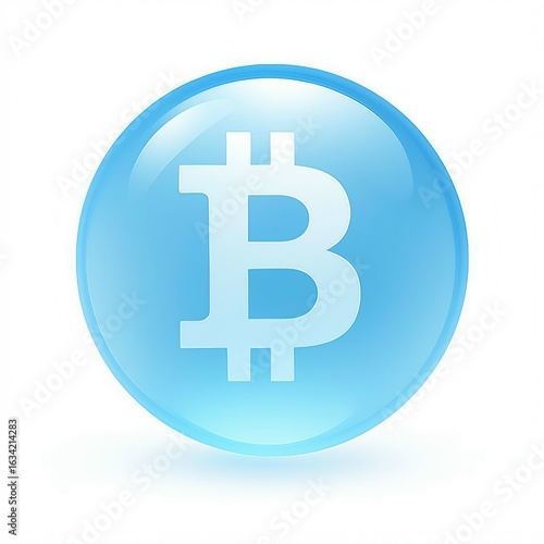 © Xohir , Fototapeta premium Glossy blue bitcoin symbol on white background