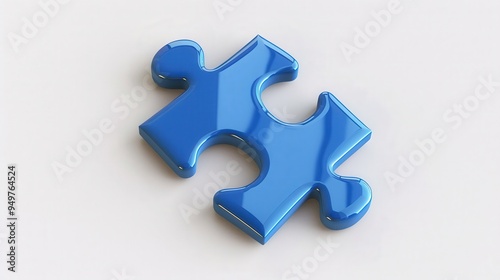 Obraz premium Glossy Blue Puzzle Piece, a vibrant 3D rendered plastic puzzle piece, smooth and shiny, set against a crisp white backdrop, minimalist design emphasizing its unique shape.