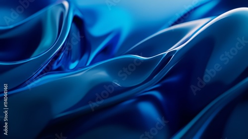 © Pichapob, Fototapeta premium Glossy Blue Satin Fabric with Elegant Waves and Soft Texture