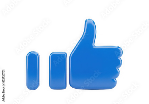 Fototapeta premium Glossy Blue Thumbs Up Icon Against a White Background