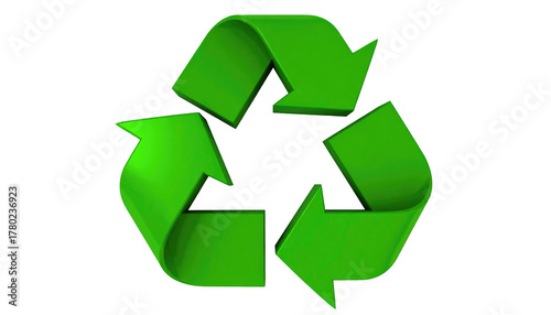 © Ahmad, Obraz premium Glossy, bright green recycling symbol isolated against a black background