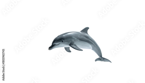 © Minum, Fototapeta premium Glossy dolphin leaping upwards isolated on stark black background