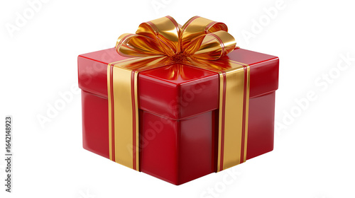 Fototapeta premium Glossy gift box emoji in bright red and gold, isolated PNG