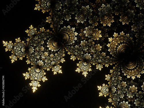 © Keila Neokow, Obraz premium Glossy gold and black fractal shape, digital artwork for creative graphic design