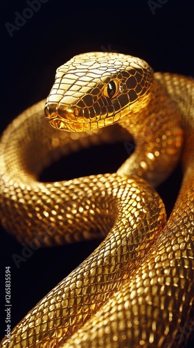 Fototapeta premium Glossy Golden Snake Sculpture on Dark Background with Intricate Detail