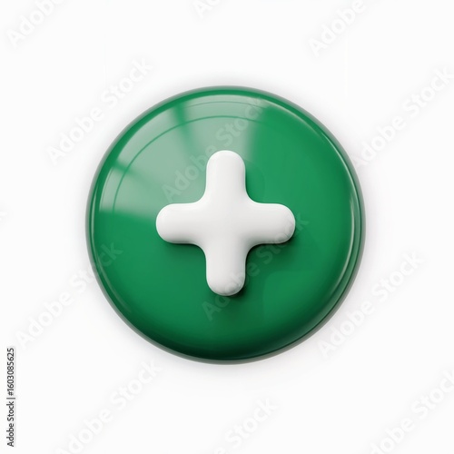 Obraz premium Glossy Green Button With White Plus Symbol image