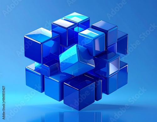 Obraz premium Glossy, interconnected, blue cube arrangement on a gradient surface
