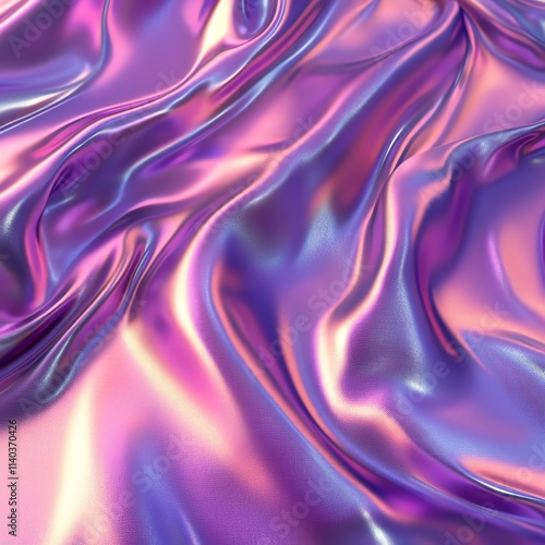 © Thanawin, Obraz premium Glossy, iridescent fabric texture with wavy patterns in purple and pink hues.