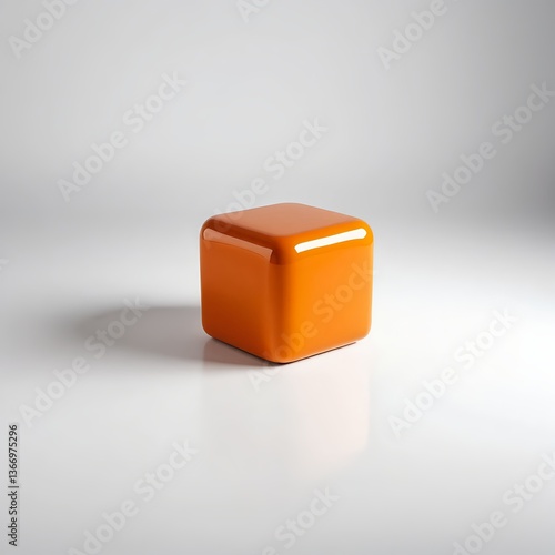 © Neungruedee, Fototapeta premium Glossy Orange Cube on White Background