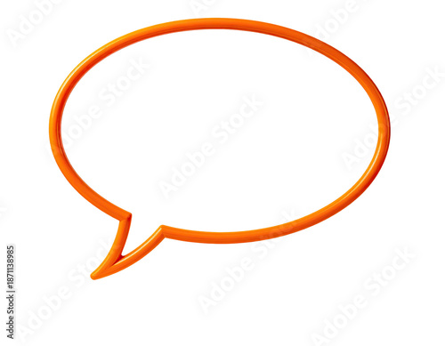 © Farhan, Fototapeta premium Glossy, orange-outlined speech bubble against a black background. Simple, effective icon for text