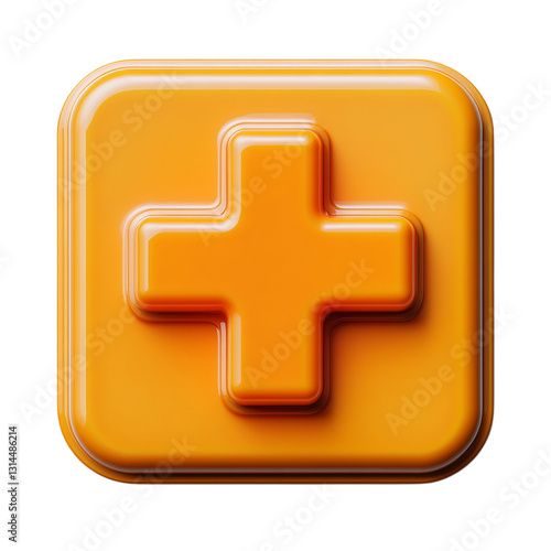 Obraz premium Glossy Orange Plus Sign Icon: A 3D Rendered Medical or Add Symbol