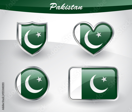 © JoelMasson, Obraz premium Glossy Pakistan flag icon set