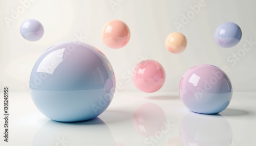 © yuntunen, Obraz premium Glossy pastel spheres floating against a soft background