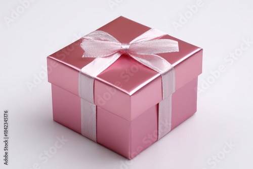© Maryna, Fototapeta premium Glossy pink gift box with ribbon on white background