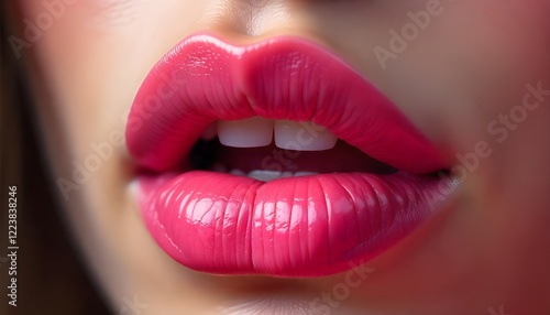 © Eva, Obraz premium Glossy pink lips adorned with glitter, The background is studio, close up full lips