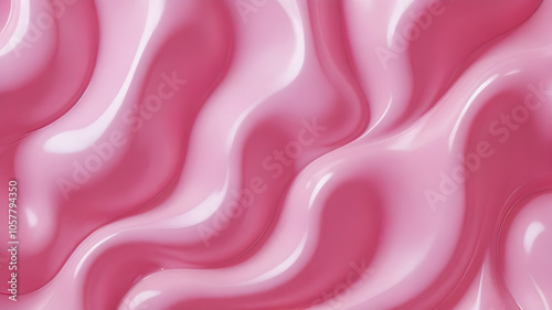 Obraz premium Glossy Pink Waves Background. Smooth liquid texture with gentle ripples. Shiny abstract surface pattern. 3D wallpaper design with soft light reflections. Calm fluid aesthetic