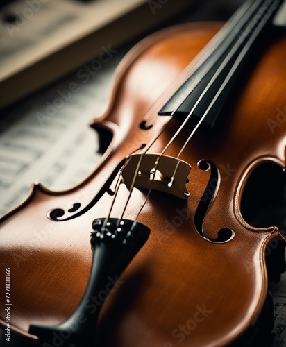 © abu, Fototapeta premium glossy polished violin and music notebook