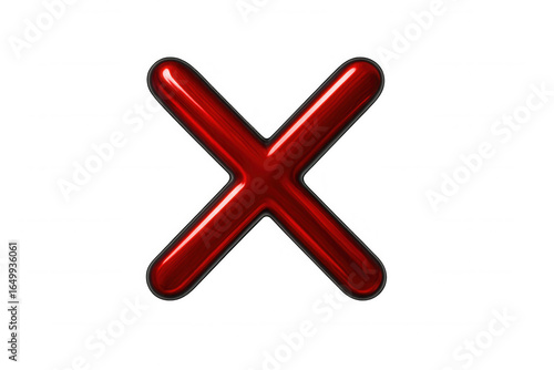 Fototapeta premium Glossy red cross with dark grey border symbolizing rejection or disapproval...