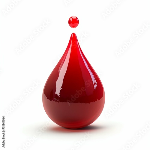 © NovaVision, Obraz premium Glossy Red Drop on White Background. Generative ai