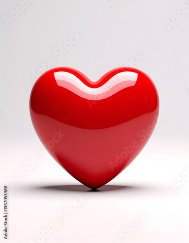Fototapeta premium Glossy red heart stands on white
