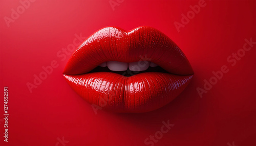 © Apon, Obraz premium Glossy Red Lips – Bold Beauty, Sensuality, and Passion in Art