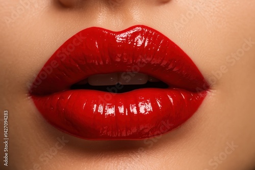 © Rawpixel.com, Obraz premium Glossy red lips close-up