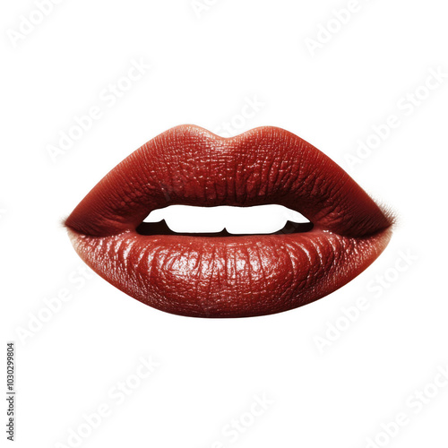 © Tomass, Fototapeta premium Glossy red lips isolated on white background in elegant beauty concept