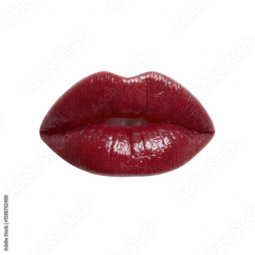 © Kamonwan, Obraz premium Glossy red lips with a captivating shine, perfect for beauty and cosmetics themes. Ideal for fashion, makeup, and self-expression imagery.