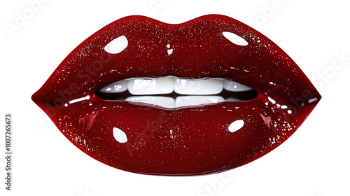 Obraz premium Glossy red lips with white teeth on a transparent background.