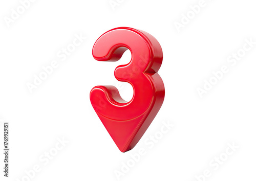 © AT, Fototapeta premium Glossy red number three pin marker