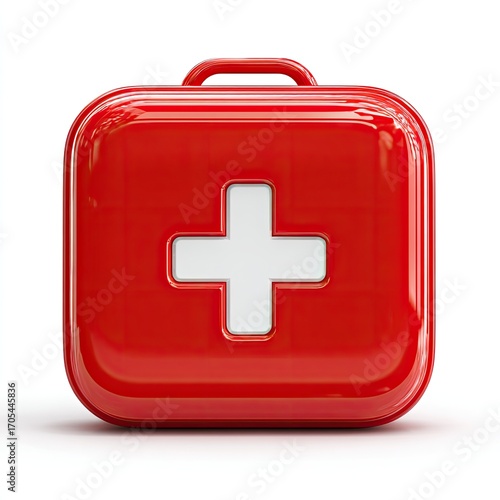 © Pinkapinky, Obraz premium Glossy red rectangular first-aid kit with a prominent white cross