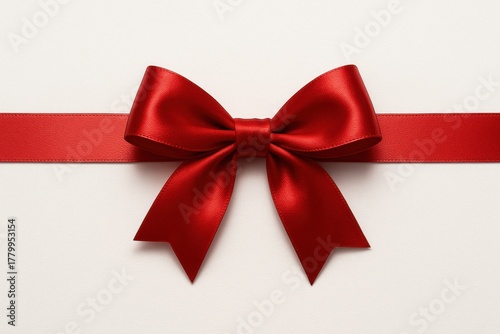 © Jelena, Fototapeta premium Glossy red satin ribbon with bow isolated on white background elegant gift decoration
