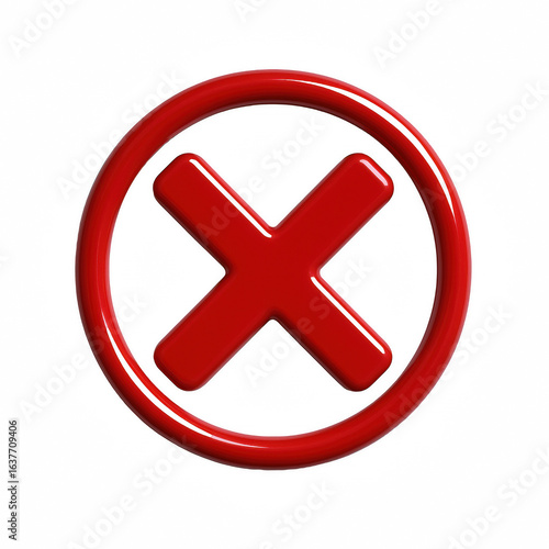 © MDNANNU, Obraz premium Glossy Red 'X' Mark Symbol Inside a Circular Frame, Indicating Rejection or Error