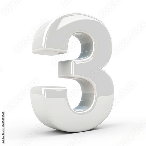 Fototapeta premium Glossy, reflective three-dimensional number three.