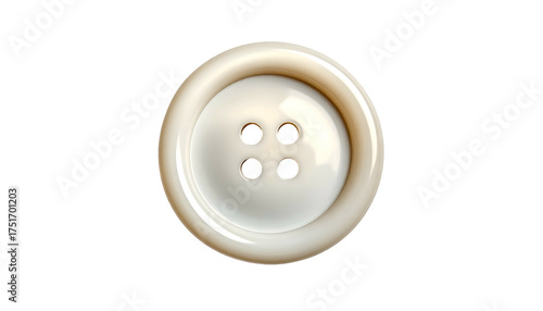 © Karcha, Fototapeta premium Glossy, round, off-white button with four holes, on black background