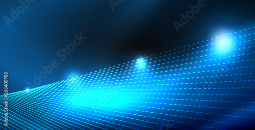 © antishock, Obraz premium Glossy shiny glowing neon waves