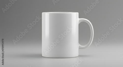 © Zulharyono, Fototapeta premium Glossy White Ceramic Mug on Neutral Gray Background