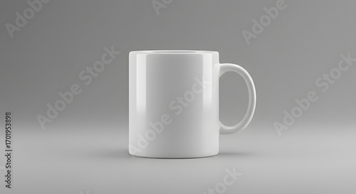 © Zulharyono, Fototapeta premium Glossy White Ceramic Mug on Neutral Gray Background