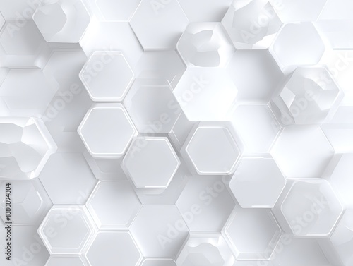 © Kawasan, Fototapeta premium Glossy white, slightly protruding, hexagonal tile pattern background